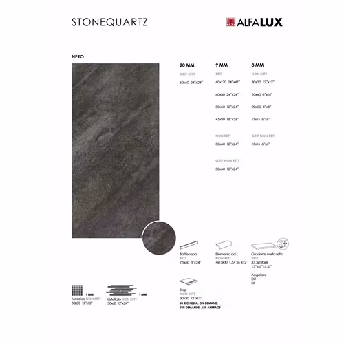 Granitkeramik Stonequartz är väl lämpad för badrumsgolv och finns i 3 olika färger. Klinkern har ett klassiskt format och med stenkänsla. Ytan är matt och lätt strukturerad. Finns även i 15x15, 30x30 och mosaik 5x5.