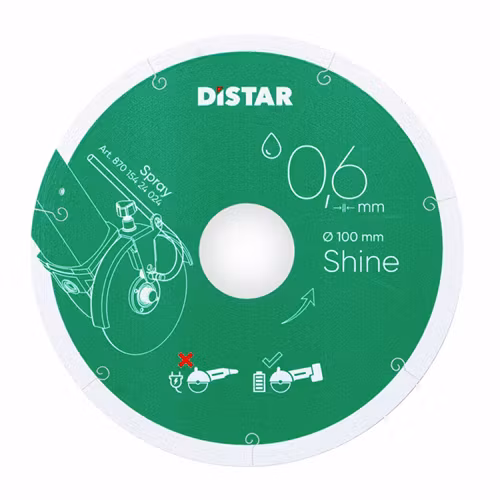 Shine är en extremt tunn diamantskiva (0,6 mm) som ger helt flisfria snitt i granitkeramik – utan efterbearbetning.