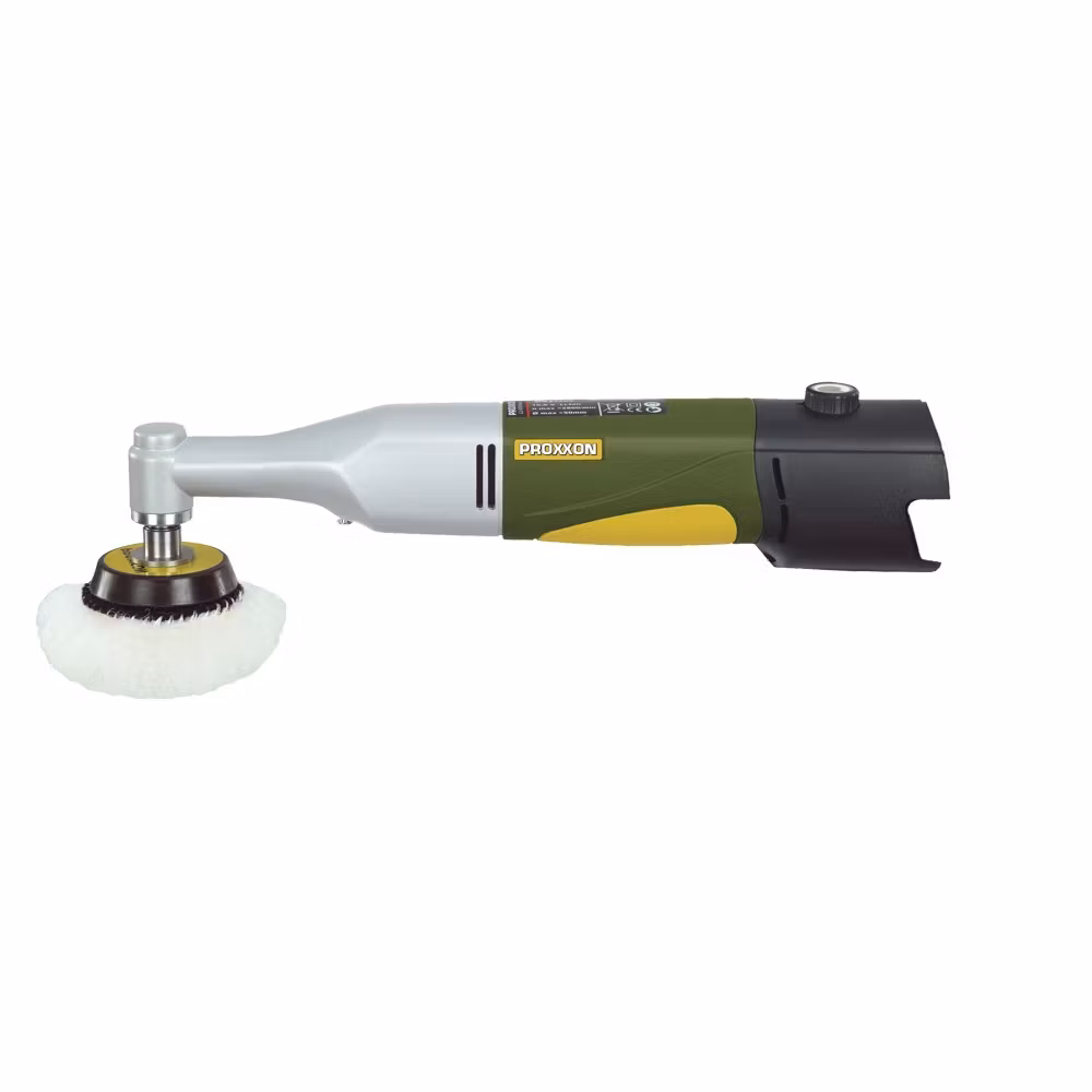 Batteridriven polermaskin med vinklat huvud, utvecklad för effektiv polering samt för rengöring, rostborttagning och efterbehandling efter lackering. Maskinen är avsedd för precisionsarbete där låg och jämn hastighet krävs, även vid arbete med högt tryck mot ytan.