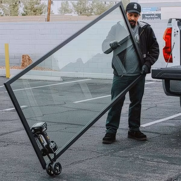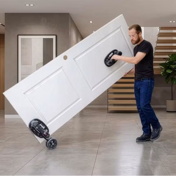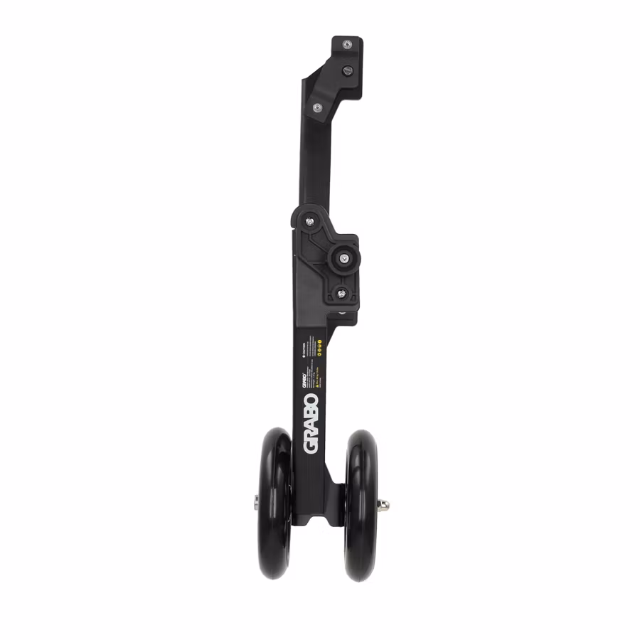 Transporthjul till Grabo Plus, Pro och Pro Brushless som gör det enkelt att flytta tunga, stora och känsliga material. De två robusta gummihjulen ger stabil och kontrollerad förflyttning av exempelvis byggskivor, glasskivor, bänkskivor och keramiska plattor.