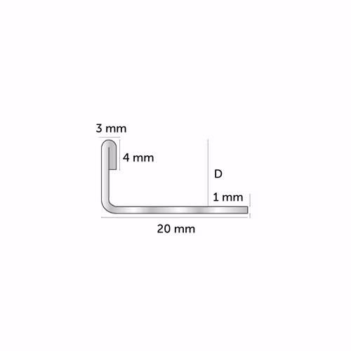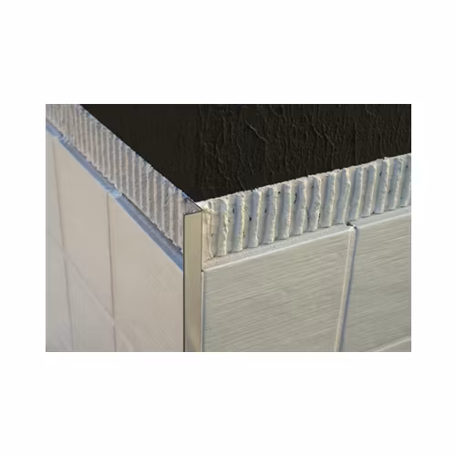 Kakellist i rostfritt stål typ AISI 316 (syrafast) med L-profil. Kan användas som hörnlist, dekorlist eller avslutningslist.