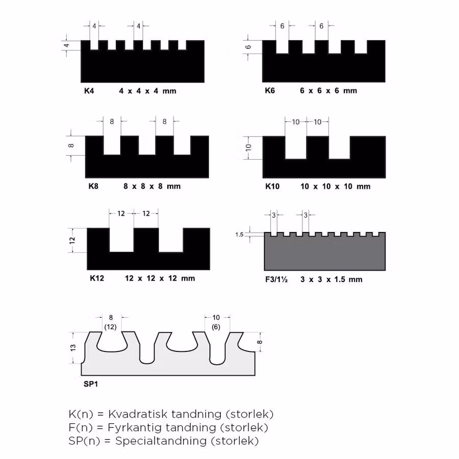 Val av tandningsstorlek på fixkam beror på plattornas storlek. Vid större plattor bör en fixkam med större tandning användas.